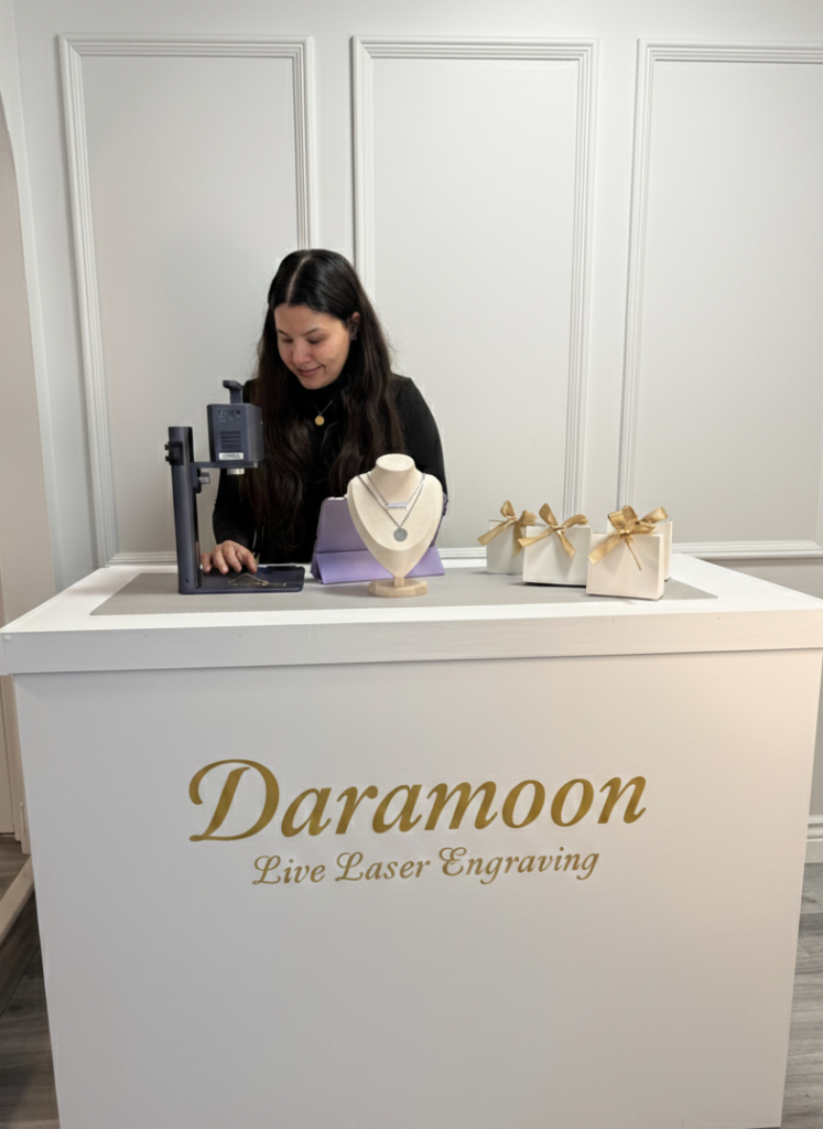 Daramoon specializes in laser-engraved jewelry and custom engraving experiences, transforming meaningful moments into refined, lasting pieces. Each design is thoughtfully created to reflect personal stories, brand identities, and elevated event experiences—crafted with precision, care, and a contemporary luxury aesthetic.